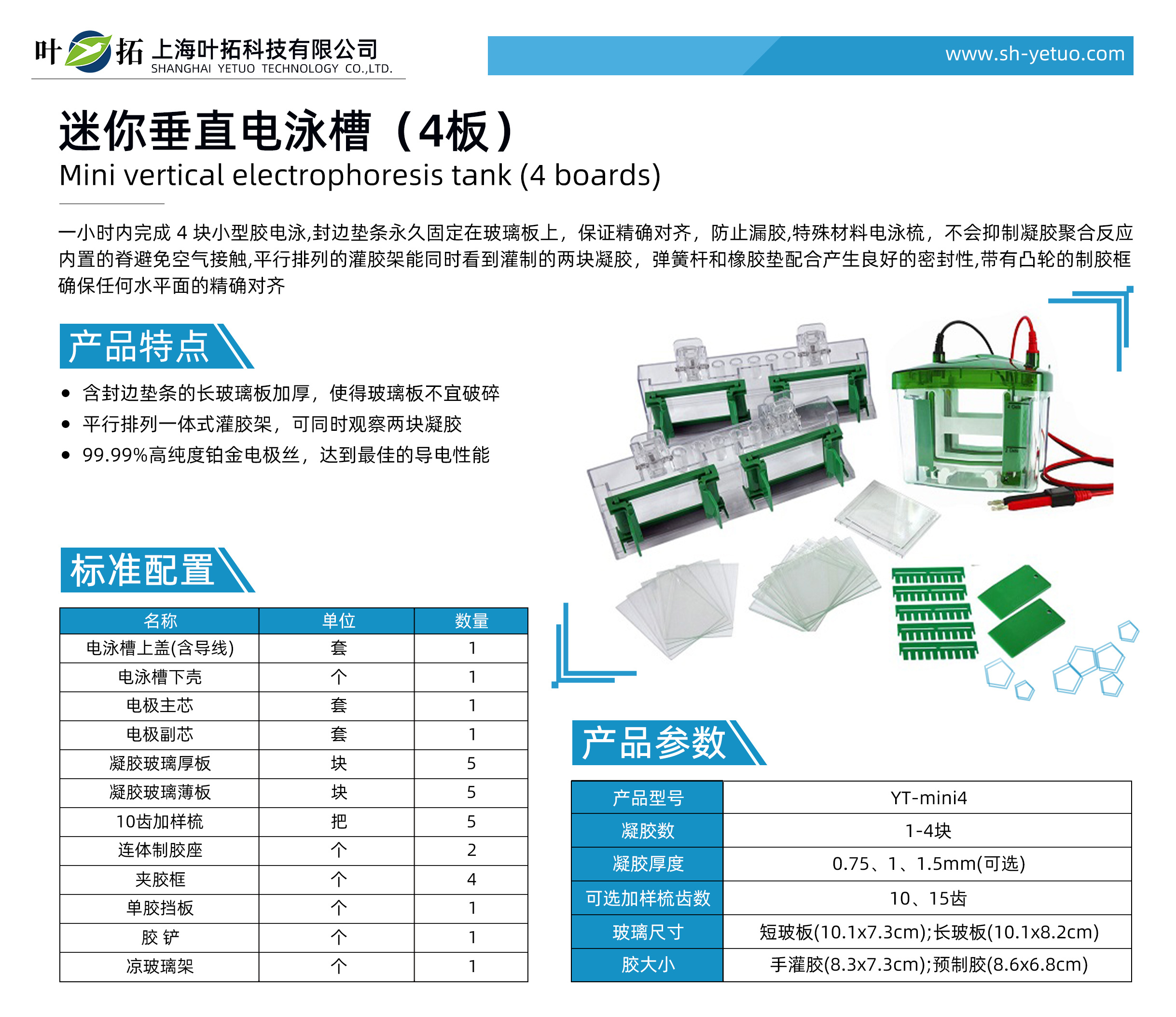 叶拓 YT-mini4 迷你垂直电泳槽详细参数